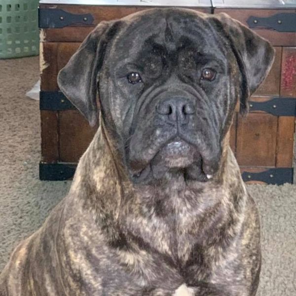 About: Laina is our brindle girl. She is three years old, and has also given us two beautiful litters as of 2021.